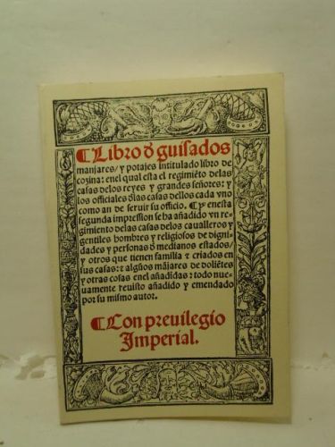 De Ruperto Nola, cocinero mayor de Su Majestad el Rey Don Fernando de Nápoles. Edición no venal con 4.000 ejemplares